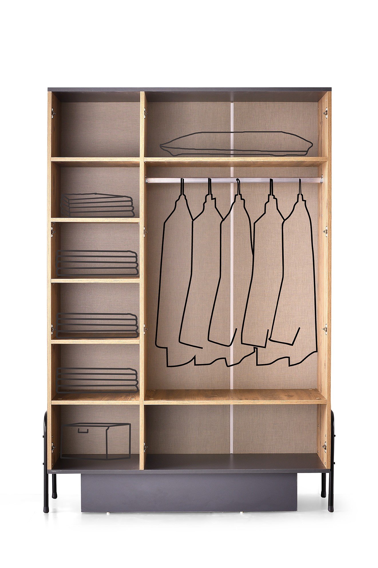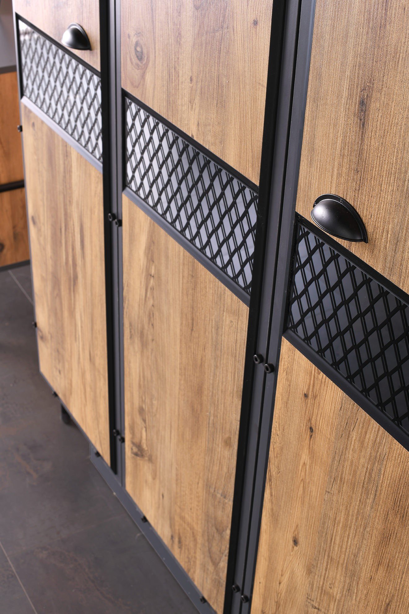 KANTON 3 KAPILI DOLAP ATLANTİK ÇAM / KARBON GRİ 1300 1950 528